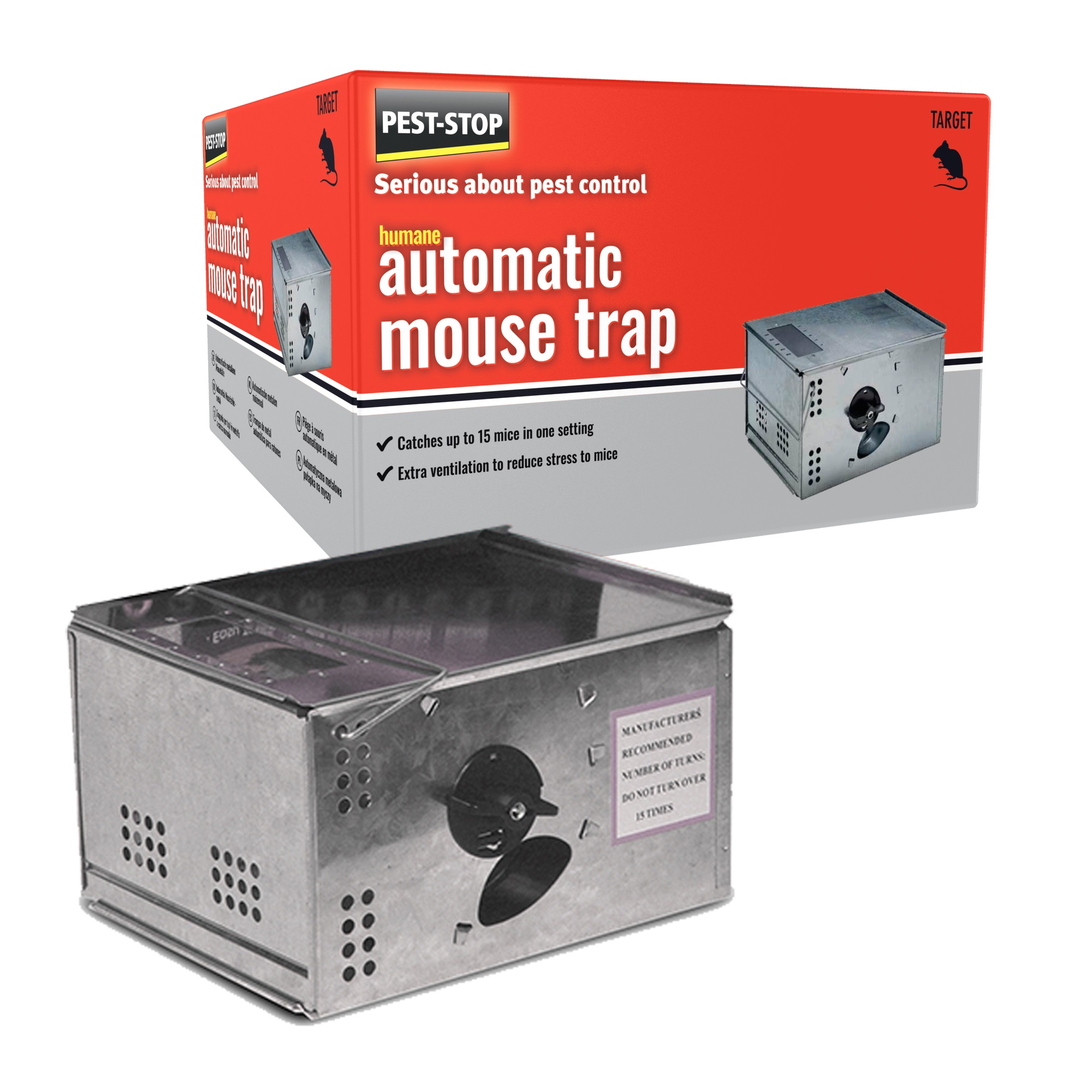 Galvaniseret stålfælde, som kan fange og rumme op til 15 mus samtidig.